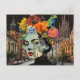 The Lady in a Collage of Flowers Buildings Frogs Postcard