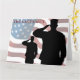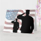 In honour of our fallen members of the armed forces. Saluting soldiers with the American flag in the background.