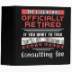 This consultant retirement gift says The Legend Has Retired If You Want To Talk You'll Be Charged A Consulting Fee.