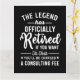 If you are retired or retiring soon you're sure to love this funny retirement design featuring the text: The legend has officially retired, if you want to talk you'll be charged a consulting fee.
