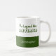 Tasse à café de retraite personnalisée avec un trait d'humour. La tasse a la citation drôle de retraite "La Légende a pris sa retraite", qui est écrit en gras, typographie verte de forêt. Pour rendre votre cadeau unique, le modèle est configuré pour que vous puissiez ajouter le nom du retraité (laissez la case vide si vous ne voulez pas de nom). Ce design a une palette de couleurs chic de vert et blanc de forêt et une simple bande de blocs de couleurs. Un cadeau de conservation utile et amusant pour votre père, mari ou souvenir de retraite pour un ami ou un collègue.
