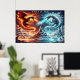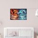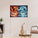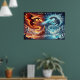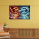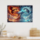 The legend of fire and ice comes to life in this epic fantasy scene, featuring two mythical dragons. The fire dragon, scales glowing like molten lava, soars through a dark, smoky sky, flames swirling around it. The ice dragon, shimmering in shades of blue and white, emerges from a frozen, crystalline landscape, exhaling a chilling mist. The background is a dramatic contrast of fiery hues and icy textures. "FIRE & ICE" is prominently displayed at the Top