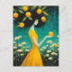AI generated art of the lemon Goddess with lemons in her hair and a lemon in her hand in a beautiful flower meadow