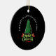 This Christmas-themed illustration features a heavily lit and decorated Christmas tree set against a solid black background. The tree is framed by a circular white inscription, "THE LIGHT OF LOVE ON HOLY NIGHT," and is complemented by the festive green and red words "MERRY CHRISTMAS" at its base, collectively conveying a cheerful, peaceful, and celebratory holiday spirit.