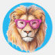The Lion with Pink Glasses Dark Blue Background Classic Round Sticker