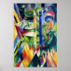 The Little Mountain Goats (1913–1914) by Franz Marc. In this charming work by Franz Marc, two green goats float above a landscape of spiky mountains. Marc was a member of the Blue Rider expressionist artist group and was renowned for his paintings of animals. In his own words, he “found man ugly” whereas animals were “lovelier and purer.” He represented this purity with prismatic forms painted in transparent layers of glowing colours.