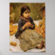 Vintage image from the painting by John William Waterhouse. Little girl sitting on a blanket surrounded by oranges. A sweet picture of an old-fashioned childhood. Public domain.