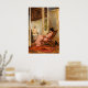 Waterhouse balances intimacy and distance. The figure is absorbed in her own world, while little details bring the space to life, like the dark cat waiting near the chair and the rich red tones of the rug beneath. Warm browns and honeyed light contrast with cooler shadows, turning an everyday moment into something timeless, dreamy, and quietly elegant.