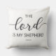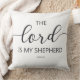 Throw pillow with elegant with the words "The Lord is My Shepherd' on the front and an elegant black and white lace print on the back. View all of our decor in our Zazzle store!