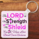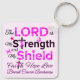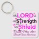 Inspirational breast cancer quote of “The Lord is my Strength and my Shield and “Faith Hope Love Breast Cancer Awareness” for breast cancer survivors and fighters who have faith in God.