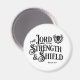 This unique magnet features the empowering verse “The Lord is my Strength & Shield” in bold black vintage-style lettering, adding meaningful inspiration to every day life. A detailed cross set inside a shield accompanies the verse, symbolizing faith and protection. Perfect as a personal reminder or a thoughtful gift, this magnet blends style and faith in a distinctive, uplifting way.