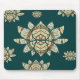 Layers of Celtic weave and Indian Mehndi from the Lotus Weave design have been masked under a lotus blossom shape in shades of teal and brown.