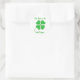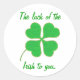 Painting of a bright green shamrock, four leaf clover, trimmed in gold dots, with the affirmation, "The luck of the Irish to you," printed on stickers. Can be customized with your own words an the easy to use template.