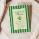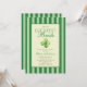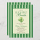 She's the luckiest bride! St. Patrick's day themed bridal shower invitation. The design features elegant vintage inspired calligraphy, adding a touch of classic sophistication to your announcements. This refined script beautifully complements the overall aesthetic, inviting guests with warmth and style. A backdrop of green stripes offers a serene and inviting canvas, creating a harmonious balance between elegance and charm. This pattern evokes a sense of traditional refinement, perfectly aligning with the old money aesthetic. A delicate watercolor illustration of a four-leaf clovers add a whimsical touch to each piece, artfully arranged to bring a sense of joy and fortune to your celebration, making the bride feel like the luckiest bride on St. Patrick's Day.