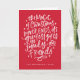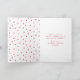 Send magical holiday greetings to friends and family with our festive non-photo holiday card. The phrase "The magic of Christmas never ends, its greatest gifts are family and friends" is displayed in a white hand-lettered script with a red background. Personalize the front of the folded holiday card by adding your name and the year. The inside of the card features a pattern of red stars and dots on the left with your custom message in red text on the right.