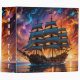 A magical ship sails through a magical land of brilliant colours in the sky on this three-ring binder. Perfect for anyone who loves sailing and fantasy.