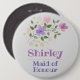 Introducing the Maid of Honour - a Button Badge with the name and a floral illustration. Wedding identification badge.