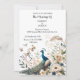 A stunning peacock stands gracefully among vibrant blossoms, its iridescent feathers fanned out in a breathtaking display. The rich colours of its plumage blend beautifully with the surrounding flowers, creating a scene of elegance and natural beauty. This image captures the allure and splendour of nature in perfect harmony.