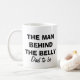 The man behind the belly coffee mug for dad to be. Funny pregnancy joke for expectant father. New baby announcement for pregnant couple / parents.