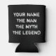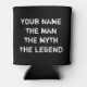 The man myth legend can cooler Fathers Day gift. Funny quote for dad on Father's Day or Birthday. Personalizable text and background colour. Cosy gift idea for daddys manly man cave. Vintage masculine typography. Keeps beer cool. Mens sports humour. Doubles sided rustic print. The man the myth the legend.