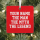 The man myth legend Christmas ornament for guys. Upload your own picture on the back to create your a unique x-mas tree ornament. Create one for dad, husband, friend, boyfriend, sports coach, team player, mate, boss, coworker, employee, brother, uncle, grandpa etc. Create your own Holiday decorations for him. Also great as corporate gift. Navy blue or custom colour with personalized name. Double sided with string.