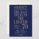 His life has been a great adventure! This fabulous navy blue men's 70th birthday surprise party invitation that says "The Man The Myth The Legend" in a classic font in silver and gold would be perfect for asking people to join you as you celebrate the man in your life's 70th birthday. This invitation is trendy, stylish, modern and contemporary. To see your unique invitations select "Personalize this template" and type in your information. It's super easy!
