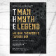 His life has been a great adventure! This fabulous black men's 85th birthday surprise party invitation that says "The Man The Myth The Legend" in a trendy grunge CAP font in white and gold would be perfect for asking people to join you as you celebrate the man in your life's 85th birthday. This invitation is stylish, modern and contemporary with the wheels of time turning in the background. To see your unique invitations select "Personalize this template" and type in your information. It's super easy!