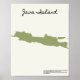 This image features a simplified map of Java Island, part of Indonesia, with a minimalistic design. Java lies southeast of Malaysia and Sumatra, south of Borneo (Kalimantan), and west of Bali. It is divided into four provinces: East Java, Central Java, West Java, and Banten. The clean style emphasizes its geographic shape and location in the Indonesian archipelago.