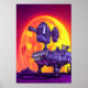 A mech standing in the moonlight, mainly the colour purple, yellow and orange is used in this ai art. This is a AI generated art.