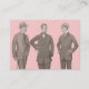 This business card features a vintage image of three well dressed men, with a pink background. The text and background can be customized to fit your needs. Perfect for a gay club!