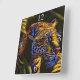 This design features a stunning and fierce Jaguar lurking amongst the lush jungle foliage, with it's powerful muscles tensed and ready to pounce, and it's piercing yellow eyes fixed on the prey. The jungle foliage is depicted in intricate detail with vivid greens and earthy browns creating a lush and vibrant jungle scene. The Jaguar's coat is rendered in rich, warm tones of golden browns and black with distinctive spots, adding to the overall sense of depth and texture. The stunning effect of this print captures the raw power and beauty of this magnificent big cat.