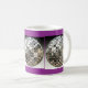 Three silver mirror balls wrap around this cool and unique disco themed mug. Shown is a white mug with a blue border and purple accents, but many styles and colours of mugs are available. To change the blue background colour and groovy purple border just click on "Customize it" and then click on "edit" and then "background" to change them to your taste. Get ready to party! Makes a fun gift!