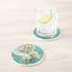 This is a drink coaster with a variation of "The Moon" artwork by Mucha. The piece is also known as "Moonlight and "Clair de Lune". The coaster is done in green. The coaster is available in a variety of shapes and materials, such as marble, sandstone, limestone, and travertine.
