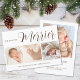 With a customizable space for 3 of your baby's photos on the front and 1 photo on the back and all the important details, this announcement is the perfect way to share the news of your newest family member. The playful "The More the Merrier" quote in script calligraphy is an elegant way to let everyone know that your family is growing and that you're excited to celebrate with them this holiday season.