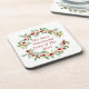 The Most Wonderful Time of the Year in the middle of a wreath on a beverage coaster set. You cannot have too many coasters for company or perfect for a gift for that person you do not know what to buy.
