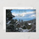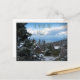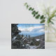 This marriage announcement features a beautiful photograph of rustic cabins on top of a snow tipped mountain. The customizable text reads 'The Mountains Called…' and the back of the card is a template that reads 'We Eloped' with the marriage date and personal message.