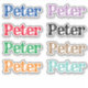 Colourful stickers with the Christian name Peter.