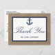 The rustic burlap effect background gives these thank you postcards a boho-chic feel, while the nautical navy blue colour can be used throughout your whole wedding. The nautical ship's anchor is the perfect finishing touch for any elegant nautical beach wedding.