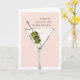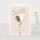 Sarcastic birthday card features a watercolor martini cocktail illustration with "however old you are is the new 30" in vintage typewriter lettering. Customize the inside message or leave as-is; default message reads "cheers to you -- happy birthday."