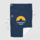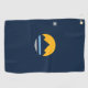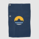 Golf Towel with the new flag of the city of Reno, Nevada; a dark blue flag with a yellow sun and blue mountains in the centre