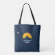 Tote Bag with the new flag of the city of Reno, Nevada; a dark blue flag with a yellow sun and blue mountains in the centre