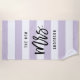 Our sweet personalized bride beach towel makes a perfect honeymoon gift for a newly married friend! Design features "The New Mrs. [lastname]" in modern, trendy black typography on a pastel lavender purple and white striped background. Easily customize with the bride's new last name using the field provided. Prefer this for a bride-to-be? Simply switch "new" to "future."