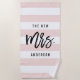 Our sweet personalized bride beach towel makes a perfect honeymoon gift for a newly married friend! Design features "The New Mrs. [lastname]" in modern, trendy black typography on a blush pink and white striped background. Easily customize with the bride's new last name using the field provided. Prefer this for a bride-to-be? Simply switch "new" to "future."