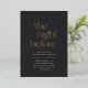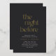 Add dramatic elegance to your wedding weekend with this black and gold rehearsal dinner invitation. Featuring striking serif typography and “the night before” in shimmering gold foil, this bold and stylish design is perfect for evening events, formal dinners, or black tie celebrations. Fully customizable for your special night.