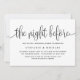 Let's celebrate the bride and groom before the wedding. Invite family and friends with this elegant rehearsal dinner invitation. It features whimsical calligraphy with classic typography. Personalize by adding names, date, address and other details. This script The Night Before invitation is perfect for any wedding season and theme.