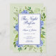 This "The Night Before" blue hydrangea rehearsal dinner invitation with your qr code is perfect for your party. It's lovely watercolor flowers and clean type navy blue script with a soft green background for the flowers and foliage make it stunning, modern yet classic! Having your qr code on the back will make rsvping to your rehearsal dinner easy and convenient for your guests. It's super easy to customize these invitations by selecting "Personalize this Template", typing in your information, and uploading your qr code. In a flash you will see your gorgeous rehearsal dinner invitations.