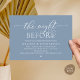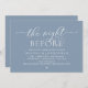 Announce your happily ever after in style with our modern dusty blue romantic theme design (The Night Before) wedding rehearsal celebration invitation card. It is ideal for couples who have decided to celebrate the night before their big day. With its sophisticated yet playful design, this invitation is sure to set the tone for an unforgettable event. The invitation card features modern romantic script design, adding a touch of timeless elegance to your celebration. Designed by TeeshaDerrick