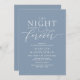 Planning a wedding romantic classy Rehearsal Dinner celebration with the to-be Bride and to-be Groom, before their BIG day? Invite the guests with this "the night before forever" Perfect modern romantic dusty blue Wedding Rehearsal Dinner Invitation Card.