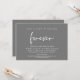 Announce your happily ever after in style with our modern rustic theme design (The Night Before Forever) wedding rehearsal celebration invitation card. It is ideal for couples who have decided to celebrate the night before their big day. With its sophisticated yet playful design, this invitation is sure to set the tone for an unforgettable event. The invitation card features a modern minimalist script design, adding a touch of timeless elegance to your celebration. Designed by TeeshaDerrick