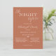 Modern rehearsal dinner invitation with a scripted text image "The Night Before". The background colour is burnt orange or terra cotta. On the back is QR code template to which you can easily add your own URL.